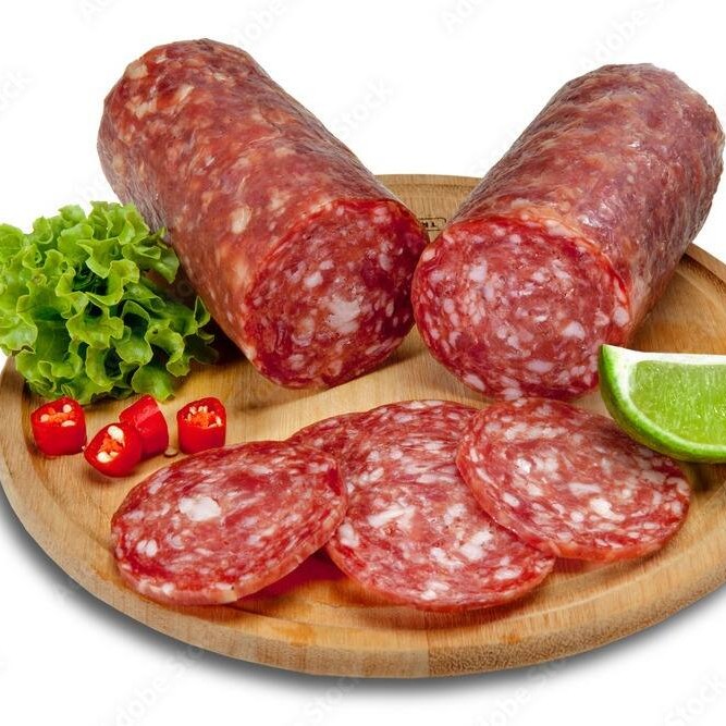 Salame fatiado.