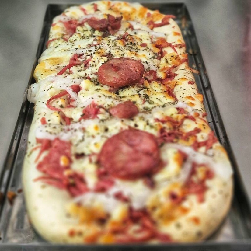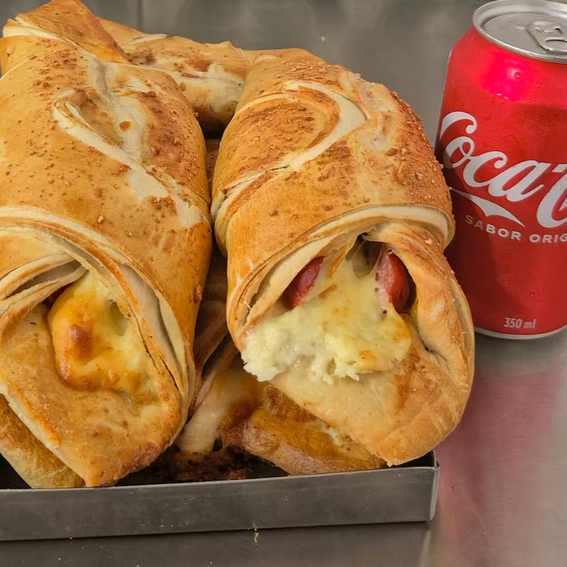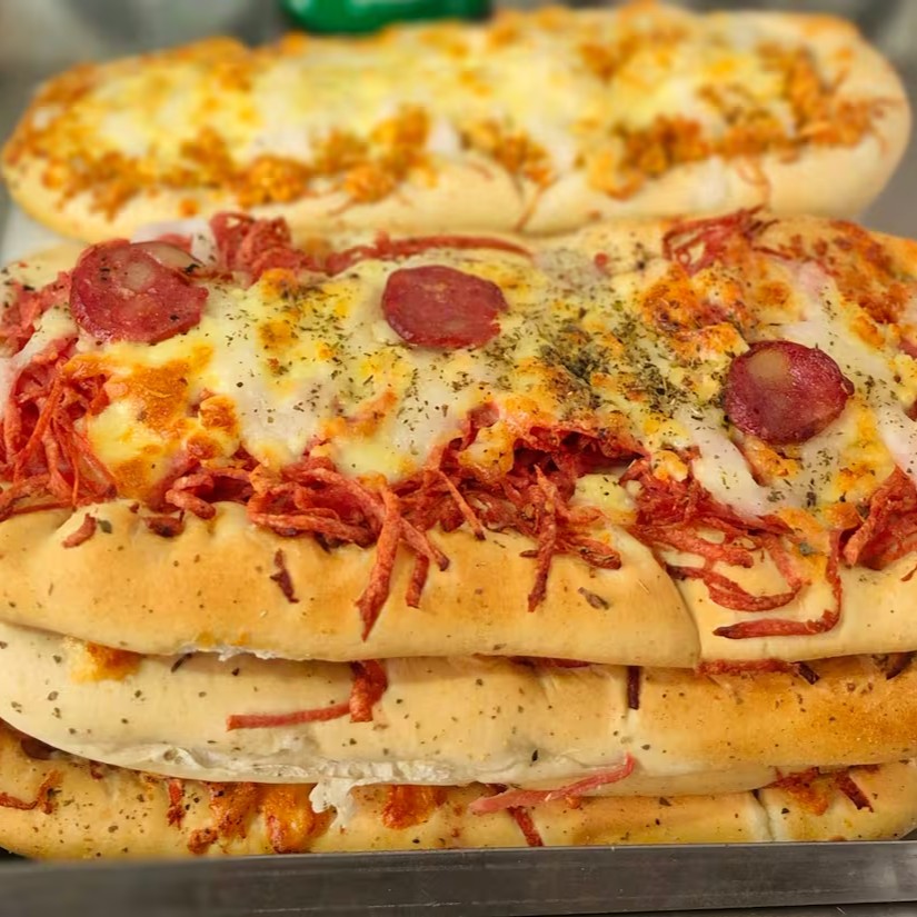 A 'Pão Pizza' é uma deliciosa opção na categoria de salgados. Este irresistível salgado é feito com um pão macio e crocante, cuidadosamente recheado com fatias generosas de presunto, acentuando um sabor autêntico e inconfundível. O queijo coalho acrescenta uma textura única, enquanto o Catupiry, famoso por sua cremosidade e sabor suave, adiciona um toque especial, tornando cada mordida um verdadeiro deleite. Essa combinação harmoniosa de sabores irá surpreendê-lo e encantar seu paladar. Experimente!