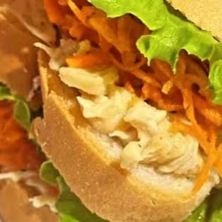 Pão integral, patê de frango, cenoura e alface