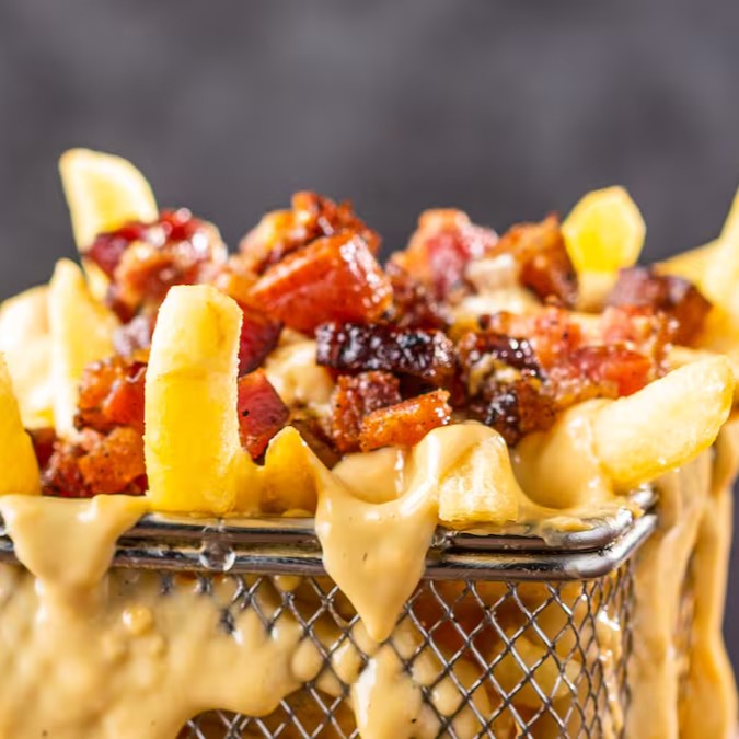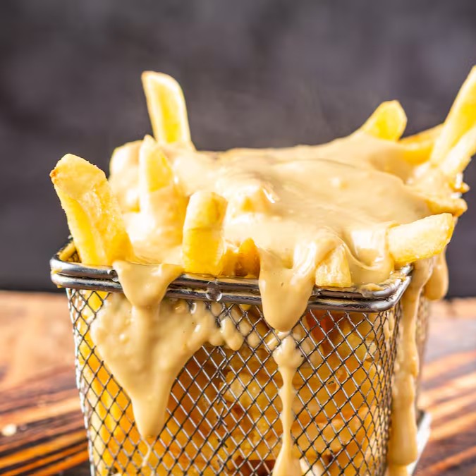 Fritas crocantes e secas cobertas por nosso apaixonante american cheese, feito exclusivamente em nossa cozinha.