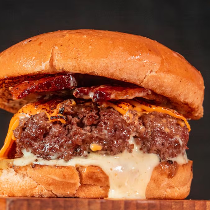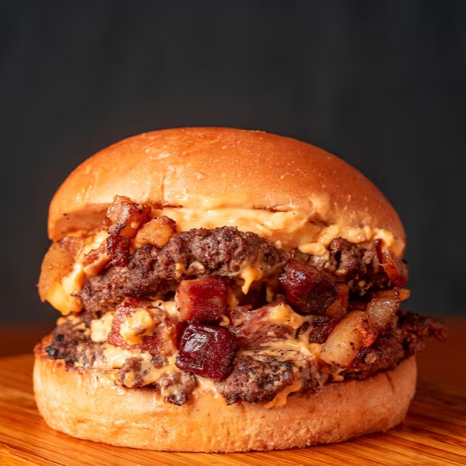 Carne smash com crosta perfeita, cheddar derretido e bacon em cubos crocantes que faz toda a diferença. Garanta o seu e sinta o poder do bacon!