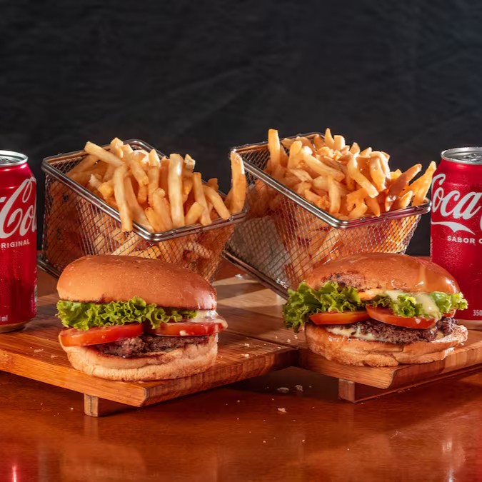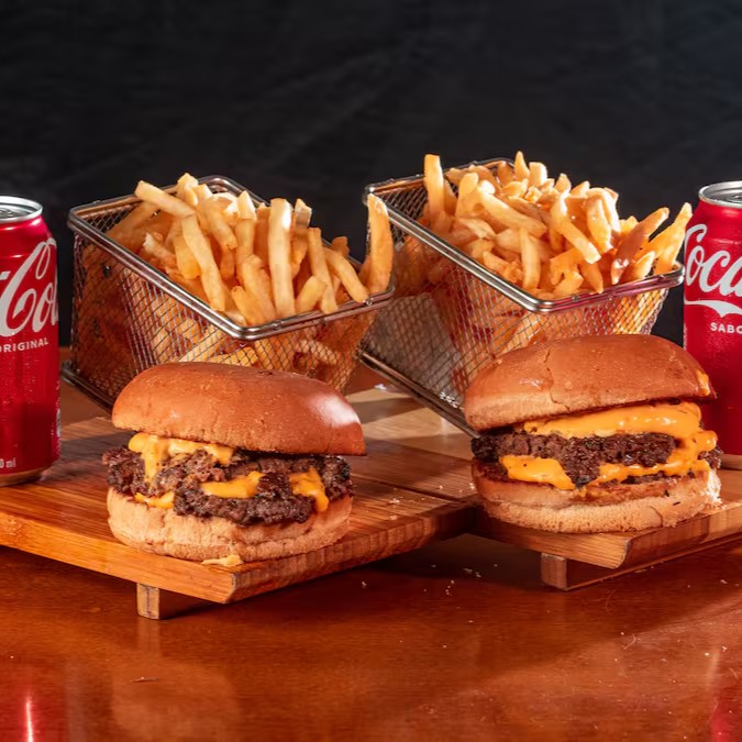 2x Smash Clássico + 2x Batata Frita + 2x Coca Cola Gelada Grátis