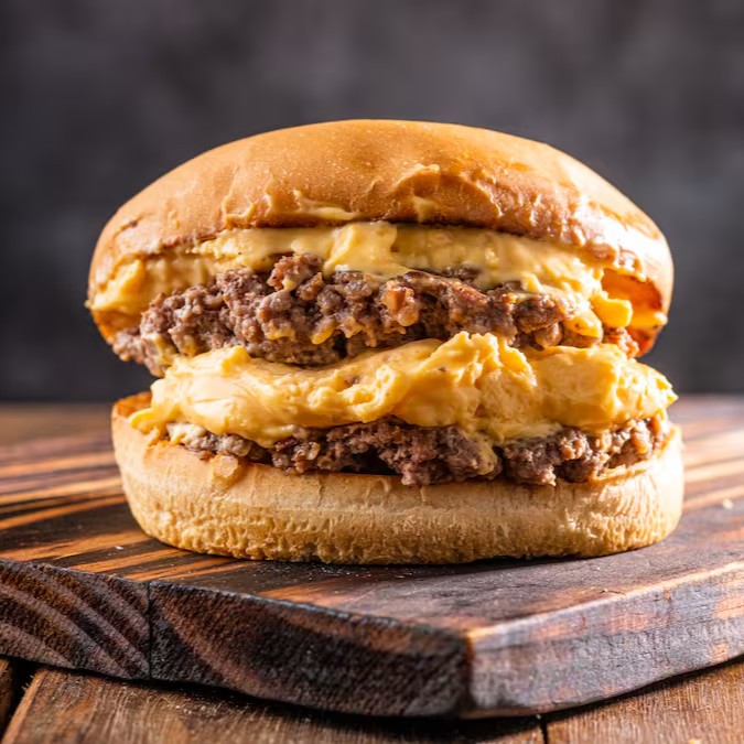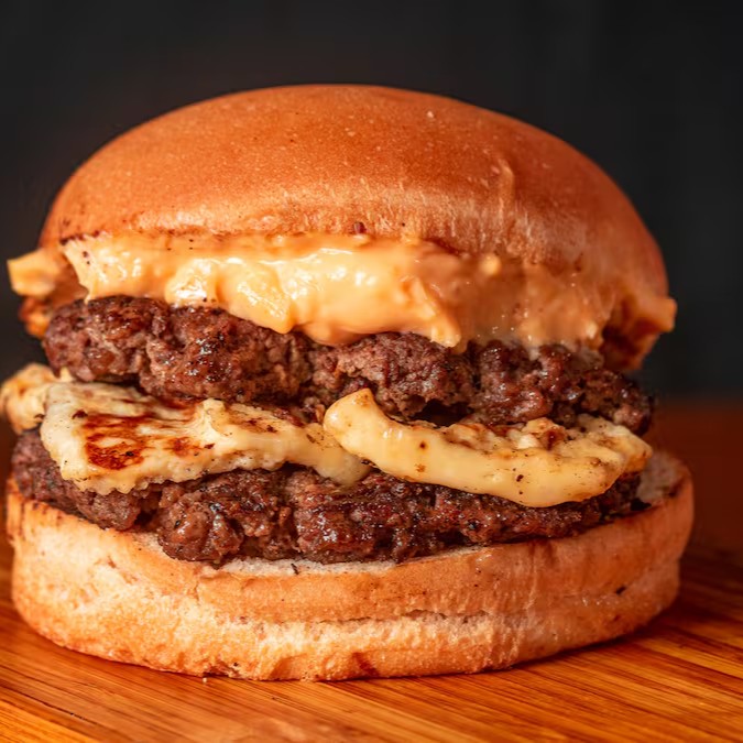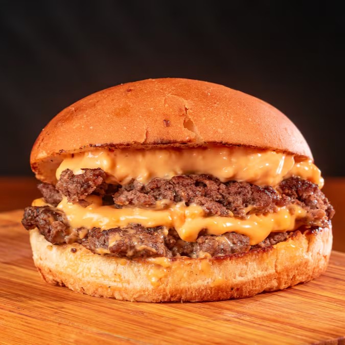 Duas suculentas carnes grelhadas ao ponto, ele traz o sabor da churrasqueira. Acompanhado de uma generosa camada do nosso queijo americano secreto, cujo sabor único derrete na boca. Combinado um pão tostado na medida certa, que traz a crocância perfeita para contrastar com a suavidade do recheio. Imperdível!