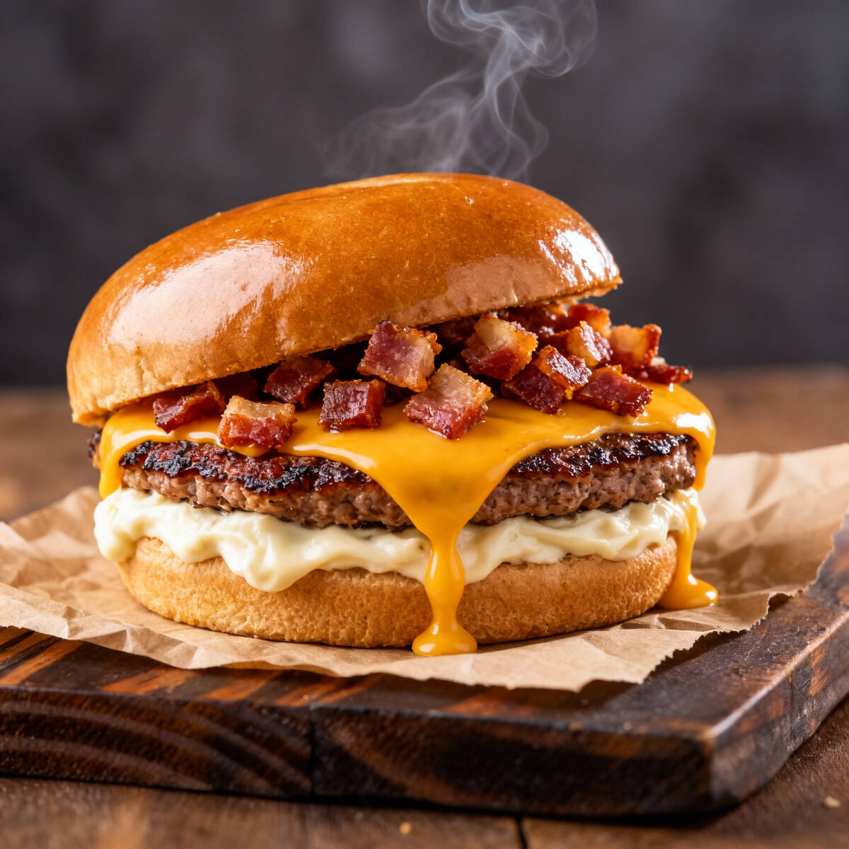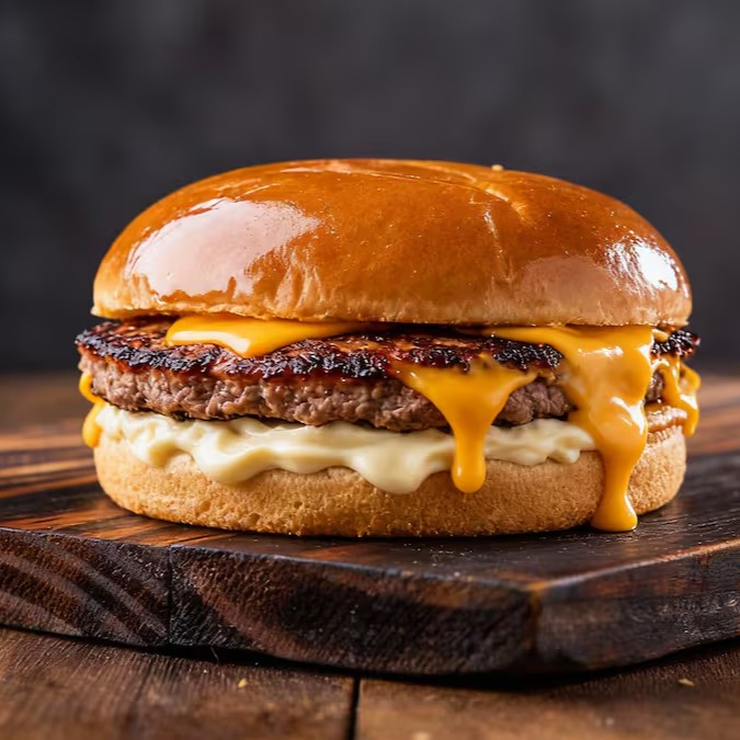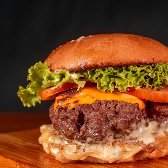 Carne fininha com crostinha smash, cheddar derretido e maionese artesanal no brioche perfeito.
