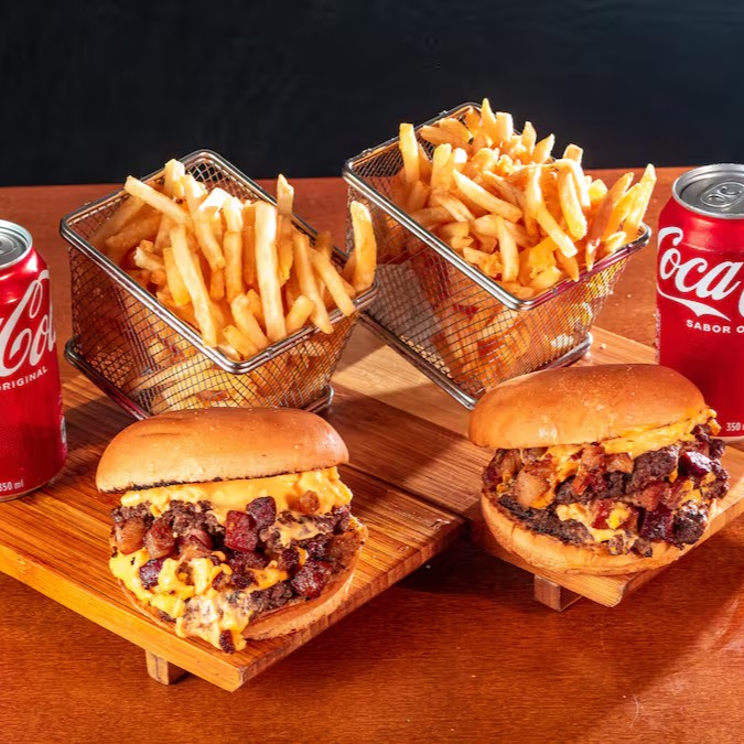 2x Smash Bacon + 2x Batata Frita + 2x Coca Cola Gelada Grátis