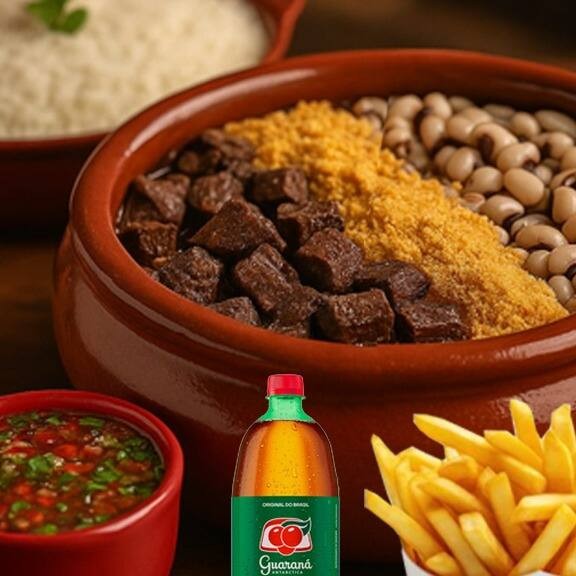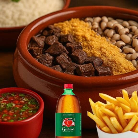 Feijoada para 2 pessoas + arroz + farofa + limão + Guaraná Antartica ou Pepsi 1 litro + batata frita.