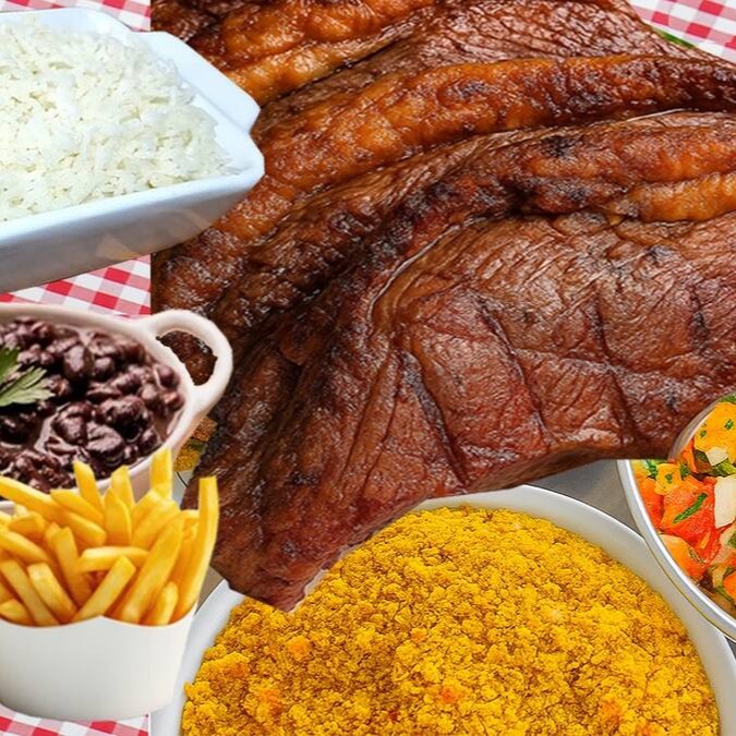 Acompanhado de Arroz, feijão, macarrão, farofa e vinagrete.