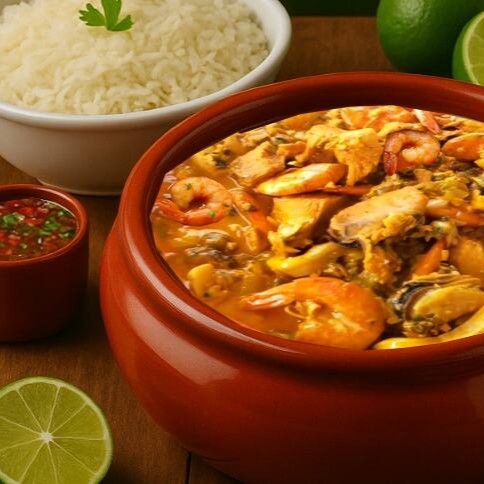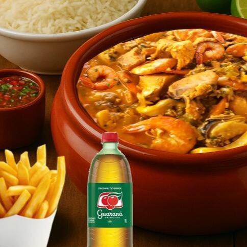 Caldeirada para 2 pessoas + arroz + farofa + limão + refrigerante 1 litro + batata frita.