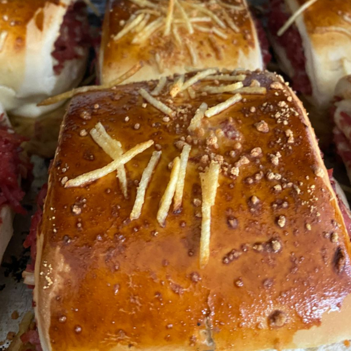 Pão, Carne Tradicional, Mussarela, Presunto, Ovo Frito, Calabresa, Alface, Tomate E Cebola.