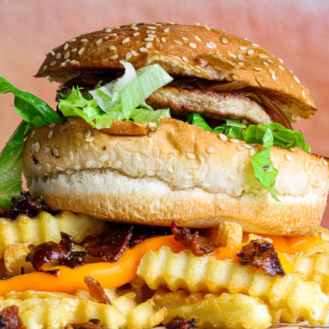 Pão especial, dois blends de 80g, queijo Cheddar, bacon e molho da casa.