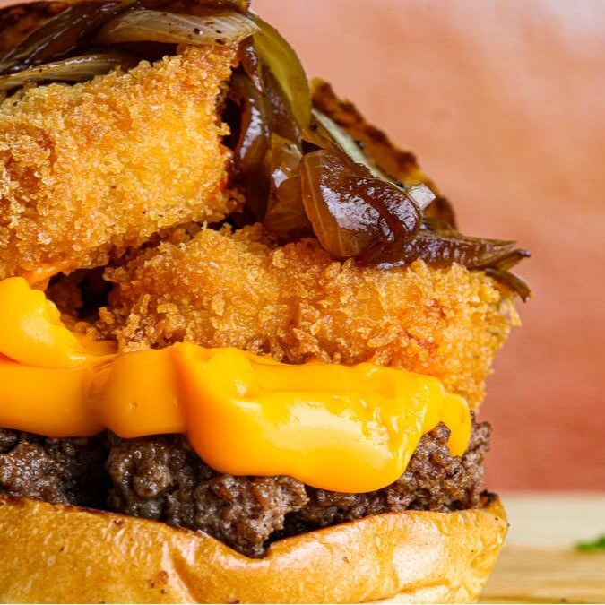 Pão especial, blend artesanal 150g, queijo coalho empanado, queijo cheddar, cebola caramelizada.