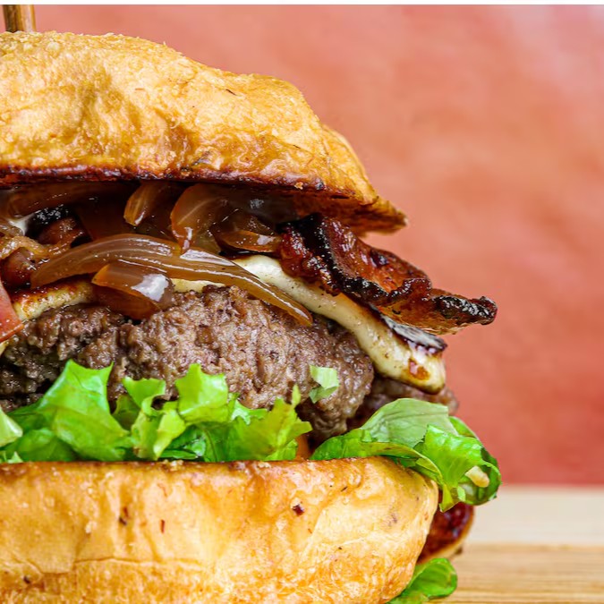 Pão de bacon, blend artesanal 150g, bacon, queijo coalho, salada, molho da casa.