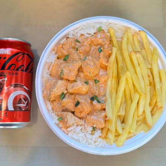 Strogonoff Frango & Fritas + Lata Coca Zero + R$ 19,99 Leve Outra Marmitex