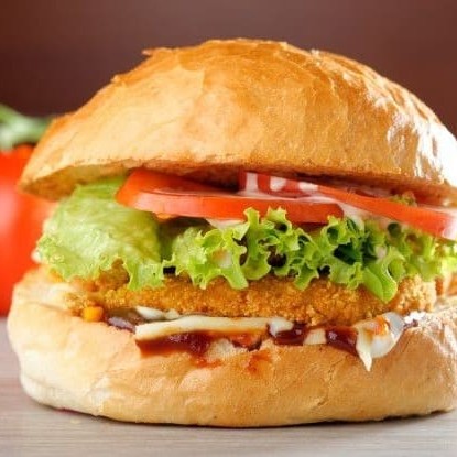 Pão,2 hamburguer de frango 70g ,queijo,calabresa,milho,salada e maionese caseira