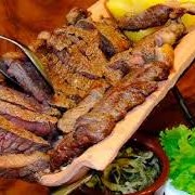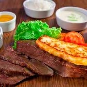 Acompanha arroz, feijão tropeiro ou macassar, queijo coalho vinagrete, macaxeira frita ou purê de macaxeira e cebola gratinada.
