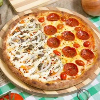 Pizza Meio A Meio: Calabresa + Mussarela