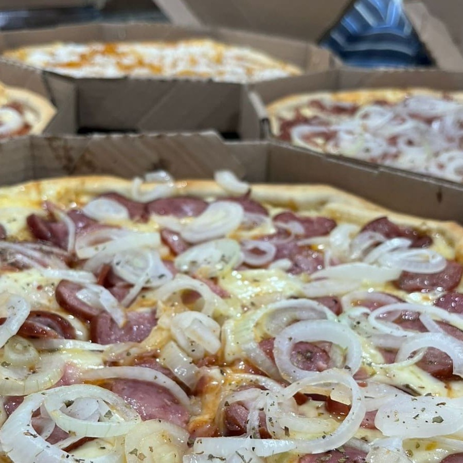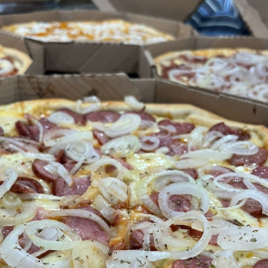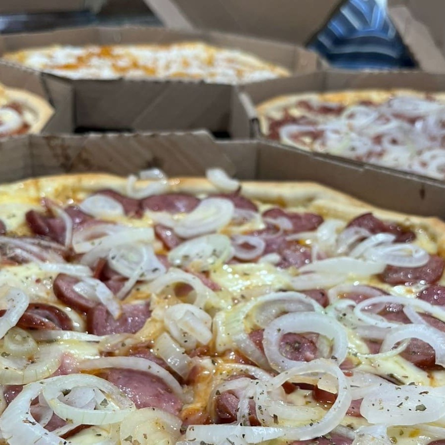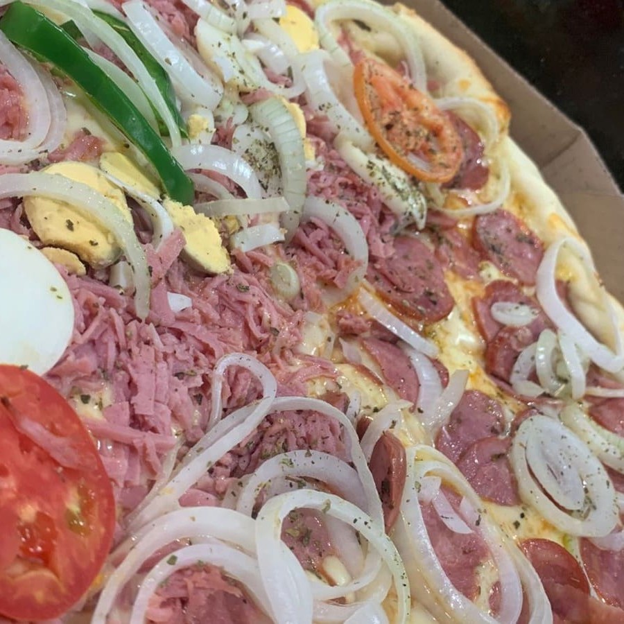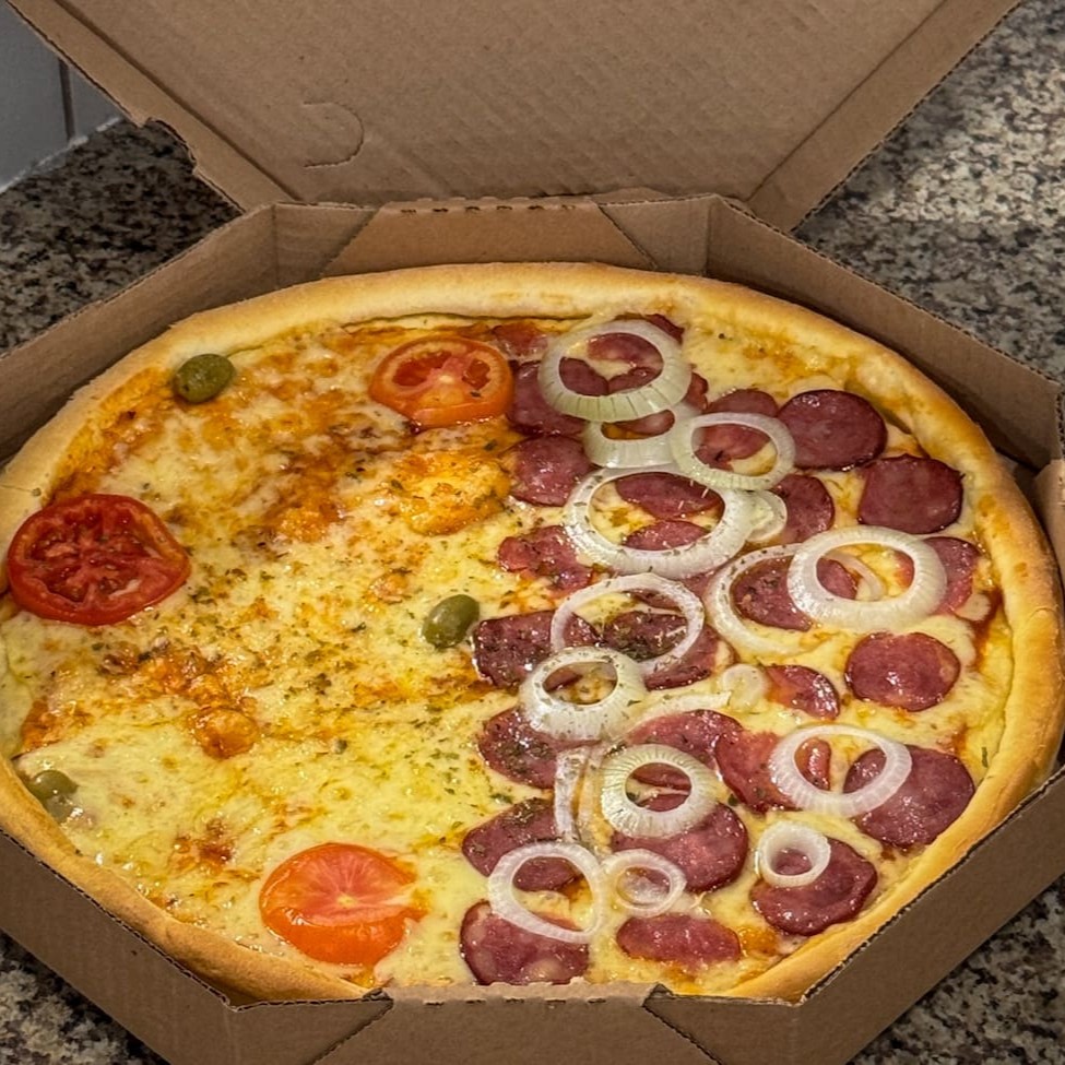 Pizza 8 fatias de calabresa e portuguesa, totalmente irresistível e saborosa!