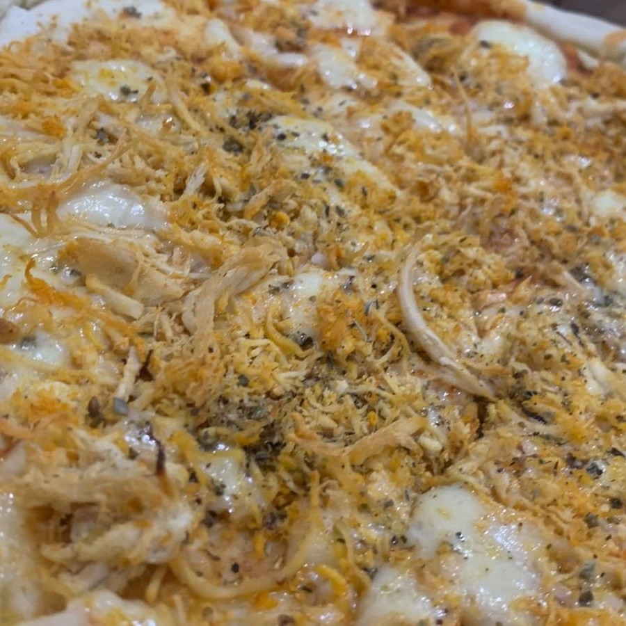 Pizza grande 8 fatias, mussarela e frango! Util e agradavel juntos