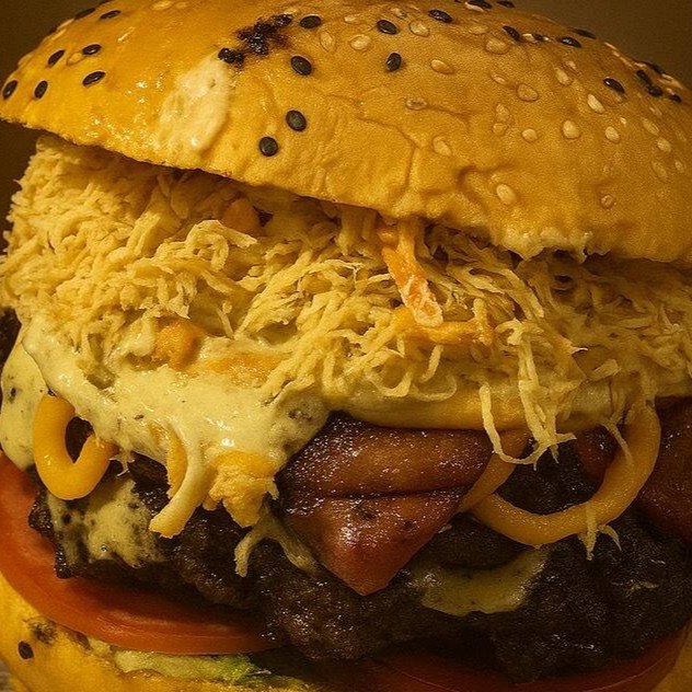 Pão Macio, 2 Hamburguers de um blend de Carne (140gr Cada), Creem Cheese, Queijo, Frito, Presunto, Bacon, Calabresa, Queijo Cheddar e Catupiry Cremoso, Salada e Molhos Especiais.
