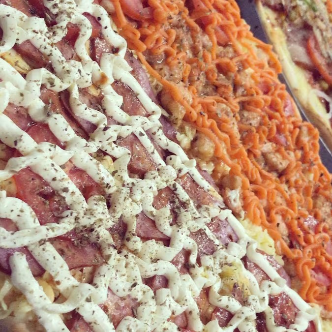 Mussarela: Massa Artesanal, Muito Queijo Mussarela, Tomate, Molho de Tomate Caseiro, Azeitona e Finalizada com Orégano.