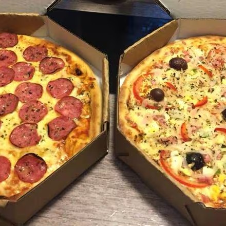 Massa Italiana, molho de tomate, mussarela, calabresa , requeijão Catupiry, cebola e orégano.