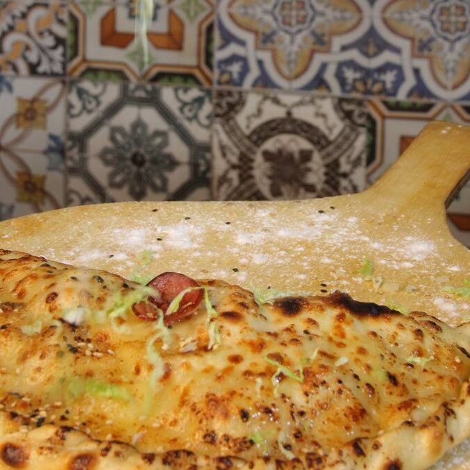 Massa italiana, mussarela, calabresa, Catupiry, cebola e molho italiano