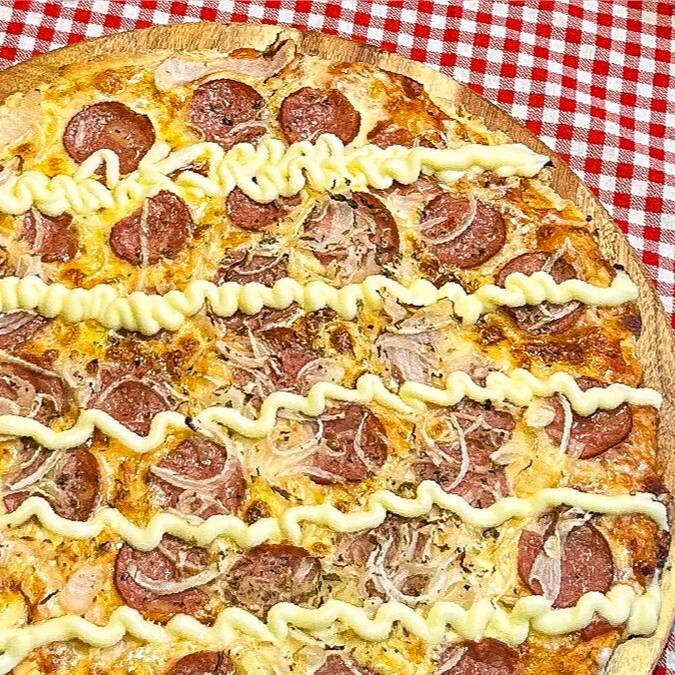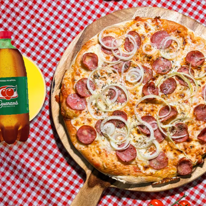 Aquela calabresa arretada, com fatias no ponto, cebola fresquinha, muçarela cremosa e orégano. É o clássico que nunca perde a vez, viu?Acompanha Refri 1l.