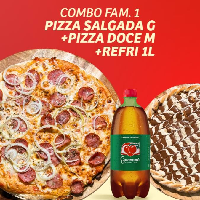 Combo Familia 1: 1 Pizza Salgada G + 1 Pizza Doce M + Refri 1l