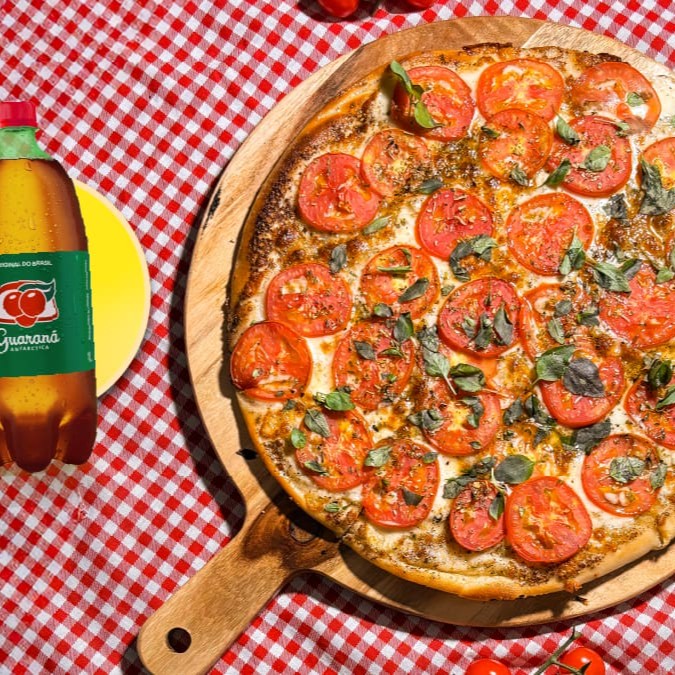 Tomate fresquinho, manjericão e muçarela derretida numa massa no ponto certo. Leve, mas cheia de personalidade. Essa é pra quem gosta de coisa fina, sem firula.