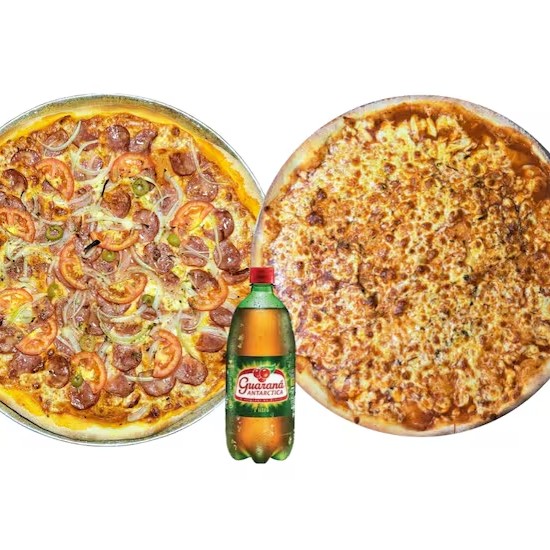 1 Pizza grande Calabresa + 1 Pizza grande mussarela +1 refrigerante 1lt