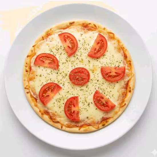 Massa artesanal, molho, mussarela, tomate e finalizada com oregano