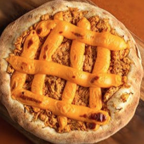 Massa com fermentação natural e artesanal, molho de tomate especial caseiro, queijo mussarela, filé de frango desfiado, queijo cheddar e orégano.