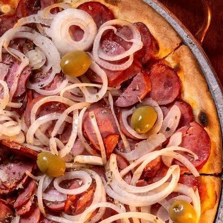 Massa tradicional, molho pomodoro, cobertura de queijo mussarela, calabresa,cebola e orégano