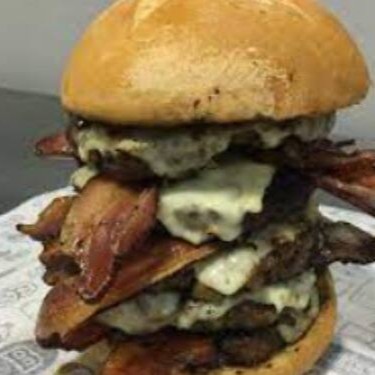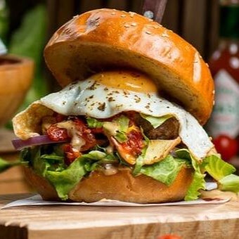 Pão brioche, carne de 100 g. Ovo, queijo , cebola caramelizada , bacon ,molho Bbq, alface e tomate .