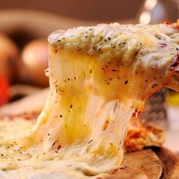 Massa tradicional, molho pomodoro, cobertura de queijo mussarela