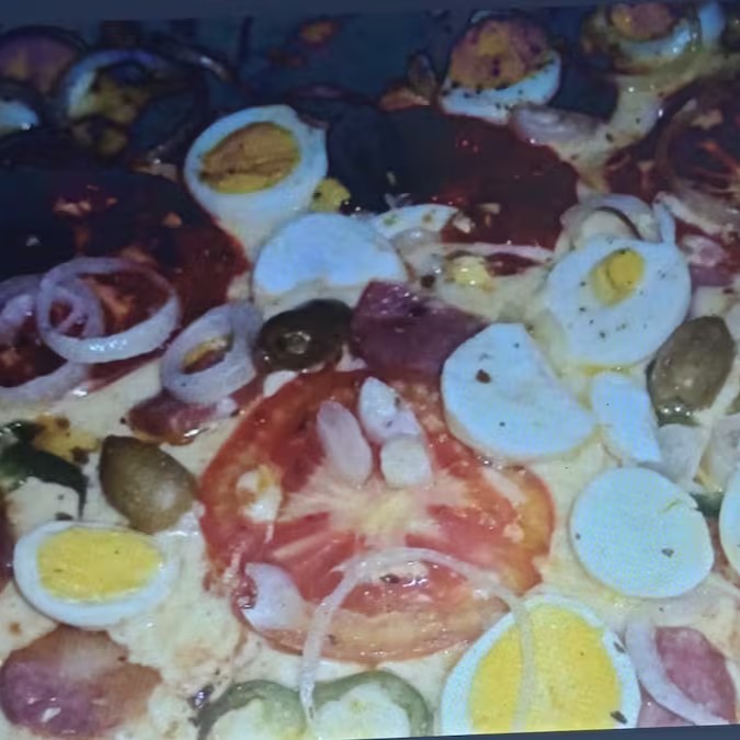 Molho de tomate caseiro,mussarela,frango,presunto cebola tomate pimentâo ovos Catupiry Orégano