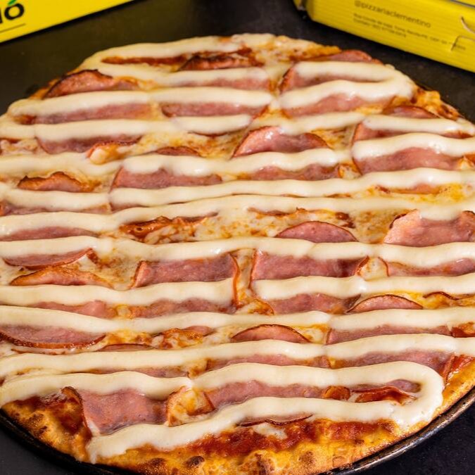 Molho de tomate especial da casa, queijo mussarela, lombo canadense defumado, azeitona preta e catupiry.