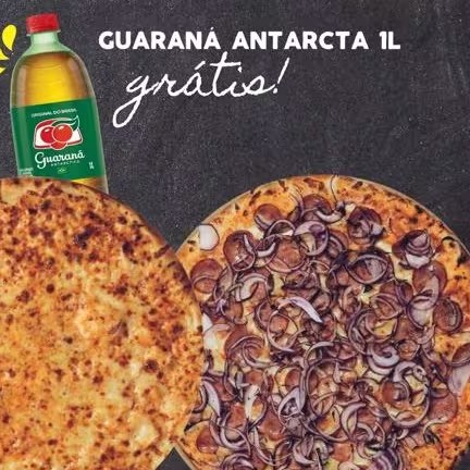 Pizza de Mussarela + Pizza de Calabresa + Guaraná Antarctica 1l Grátis.