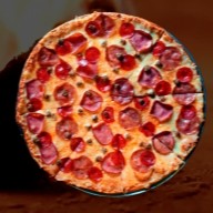 Massa fina, molho artesanal, mussarela argentina, calabresa em fatias bem finas, cebola e oregano