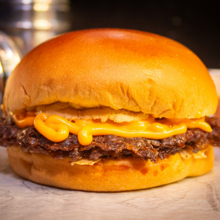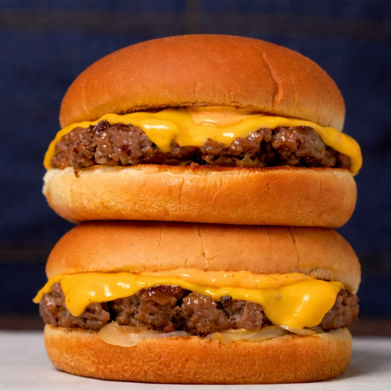 Hambúrguer industrializado prensado na chapa, queijo derretido, maionese artesanal e pão macio tostado. Simples, equilibrado e irresistível