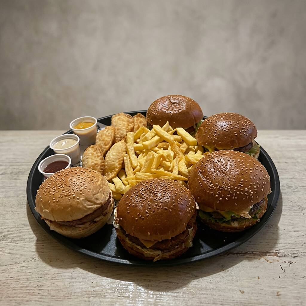 5 hambúrgueres saborosos, 5 pasteizinhos, batata frita crocante e Guaraná 1L bem gelado. Um combo completo e perfeito para compartilhar com a galera! 😋