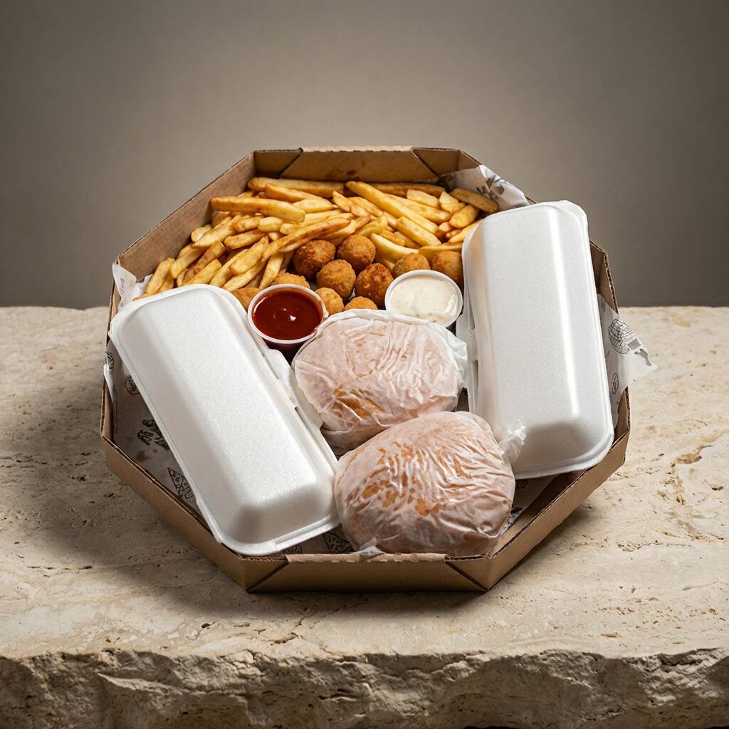 2 hambúrgueres saborosos, 2 hot dogs, 10 mini coxinhas, batata frita crocante e Guaraná 1L bem gelado. Um combo super completo, perfeito para compartilhar e aproveitar! 😋