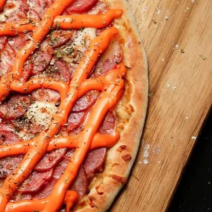 Base com molho de tomate cobertura com mussarela, calabresa defumada, cheddar, azeitona, orégano e azeitonas.