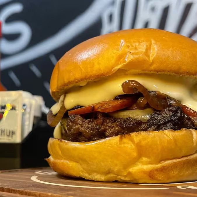 Pão tradicional, alface, tomate, cebola caramelizada, 120gr carne bovina, cheddar e molho especial.