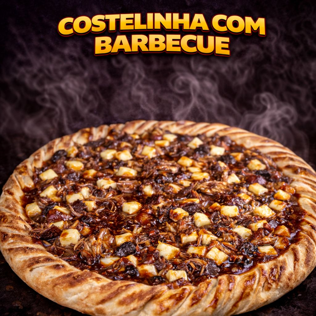 Massa Tradicional, Molho Italiano, Costela desfiada, Barbecue, Queijo Coalho ,Cebola Laminada, Azeitona e Orégano.