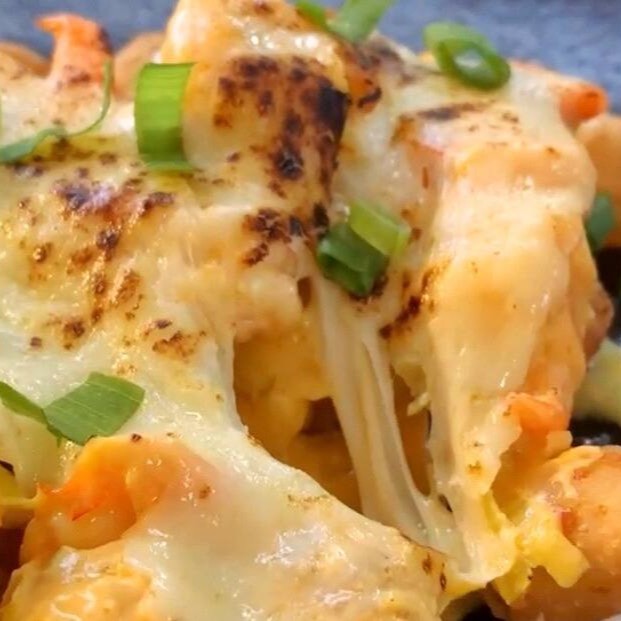 Frango salteado na manteiga com requeijão e queijo muçarela maçaricado. (16cm)