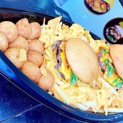 Dois Smashicano ( Pão brioche , carne Artesanal de 60 g , queijo cheddar , Doritos 10g alface , picles , cebola picadinha e nossa deliciosa maionese caseira ) + 300 g de batata frita crocante com queijo cheddar derretido + 10 mini coxinhas e 20 g de Doritos .
