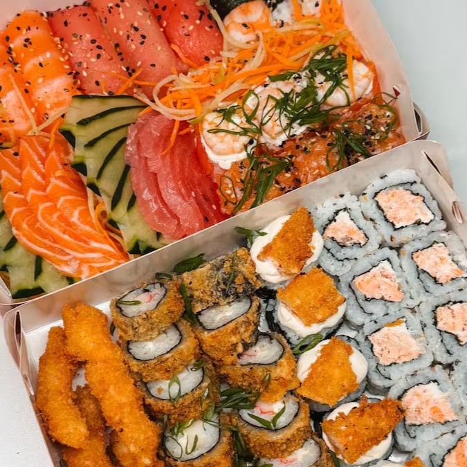 Base de Arroz: A tradicional base de arroz macio, perfeita para combinar com os ingredientes.