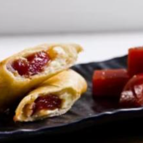 Massa de harumaki recheada com doce de leite.