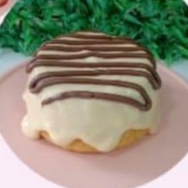 Caseirinho de massa branca com cobertura de creme de ninho e fios de Nutella. Serve 1 pessoa. Peso aproximado 430g.